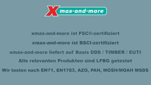 We guarantee product safetyXmas-and-more has many years of experience when it comes to ensuring product safety and social standards.